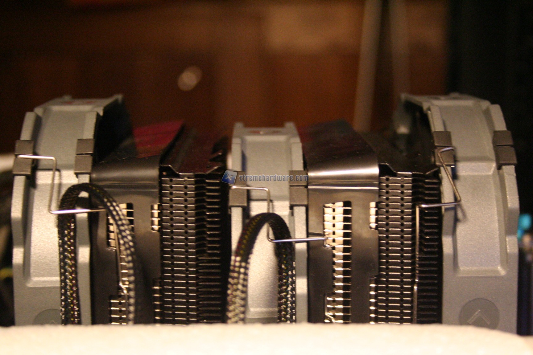 Utilizzando ventole da 120mm, ad esempio le Noctua NF-F12, la situazione migliora decisamente, la rumorosità complessiva, come le performance, sono leggermente inferiori. Da notare l’ingombro drasticamente minore: