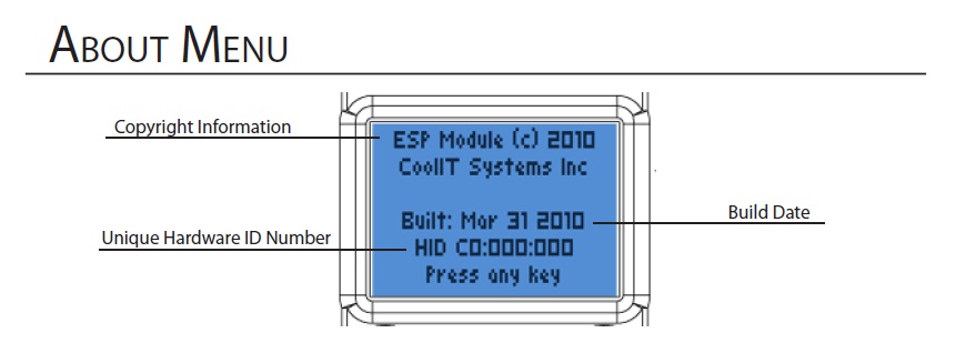 Il menù About ci da informazioni sul Copyright, numero indentificativo unico dell'hardware e data di costruzione.