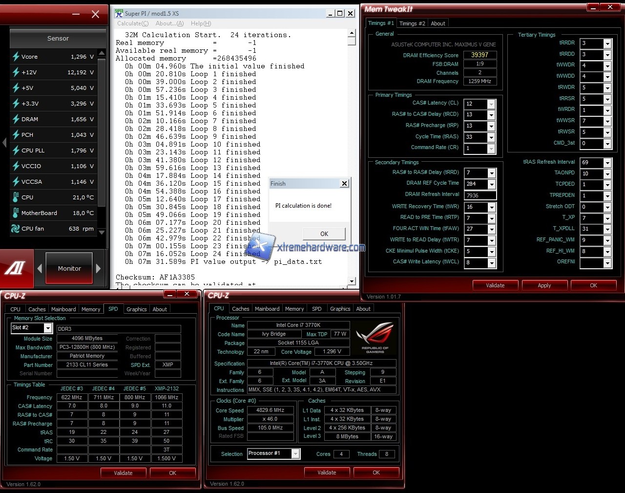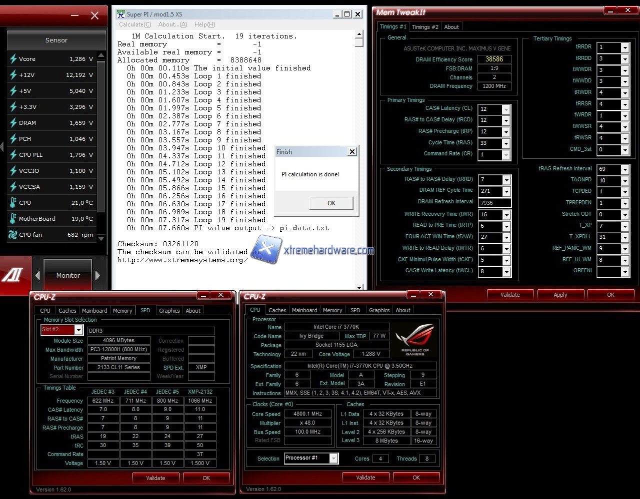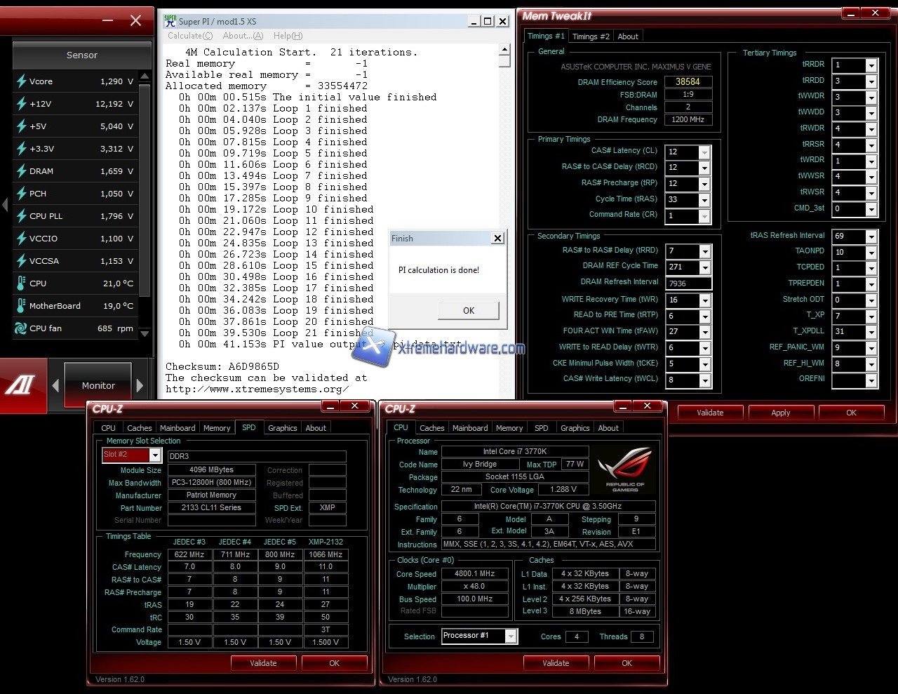 La pratica dell’overclock al giorno d’oggi conta migliaia di utenti. In sostanza per dare una definizione semplice al concetto, è la pratica con cui si spingono i componenti di un computer come ad esempio CPU, RAM, VGA ad operare ad una frequenza maggiore al fine di ottenere un beneficio tangibile in termini di denaro (in quanto si riesce ad eguagliare modelli di gamma superiore spendendo meno) e prestazionale (in termini di tempi di risposta inferiori di tutto il sistema). Non sempre questa pratica è possibile in quanto bisogna fare i conti in primo luogo con il problema della dissipazione del calore, ed in secondo luogo non tutti i componenti sono predisposti per questa pratica. Questo sia per un discorso qualitativo (e quindi di purezza dei chip) che di veri e propri blocchi a livello hardware (ossia sui moltiplicatori come per il caso dei processori Intel di fascia non Extreme). In questo caso restando sul concetto di RAM, la barriera su cui ci si scontra è solo un problema di qualità dei chip di memoria installati sul modulo in quanto abbiamo verificato che il processore con cui abbiamo effettuato i test è stato in grado di operare oltre la frequenza di 2800MHz. Per misurare quindi il potenziale delle Patriot PVI38G213C1K ossia la capacità delle memorie progettate principalmente per lavorare alla frequenza standard di 2133MHz ad operare ad una frequenza maggiore e dare il meglio di se in ambito overclock, abbiamo incrementato moderatamente la frequenza del processore oltre quella di default che trattandosi di un Intel Core i7-3770K, è di 3500MHz (3900MHz in modalità Turbo). Per i test abbiamo utilizzato il noto tool SuperPI, utilizzato anche in ambito competitivo e di benchmark sul noto portale Hwbot.org.